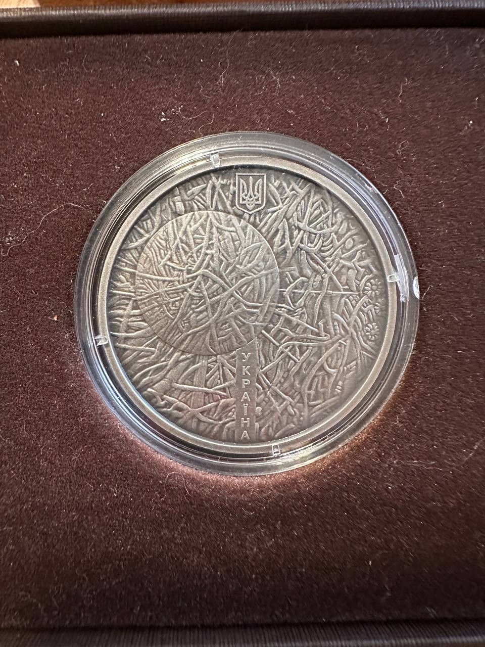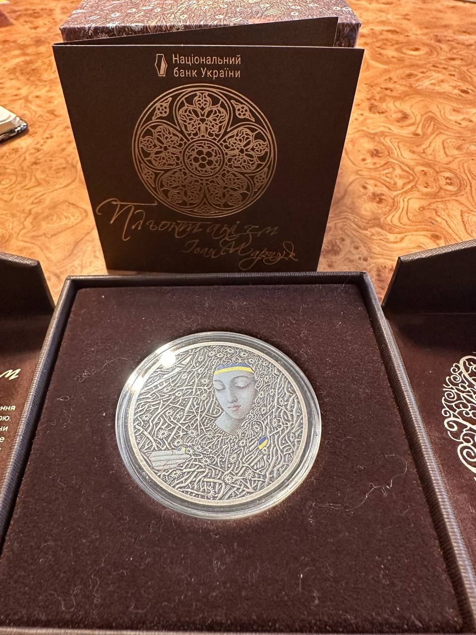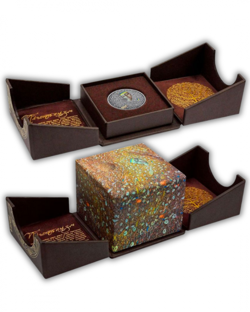 Пам’ятна монета від Національного банку України, присвячена унікальній художній техніці Івана Марчука — пльонтанізму, який прославив українське мистецтво у світі.На реверсі — фрагмент картини Івана Марчука «Пробудження» (1992), що символізує світло, життя та відродження України.